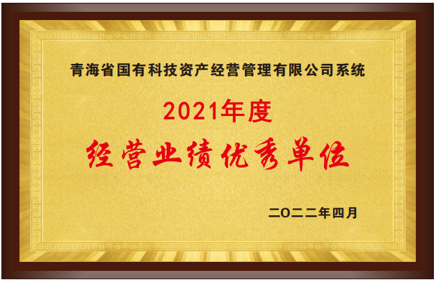 青海省國(guó)有科技資產(chǎn)經(jīng)營(yíng)管理有限公司系統(tǒng)“經(jīng)營(yíng)業(yè)績(jī)優(yōu)秀單位”,青海省國(guó)有科技資產(chǎn)經(jīng)營(yíng)管理有限公司頒發(fā),2022年4月