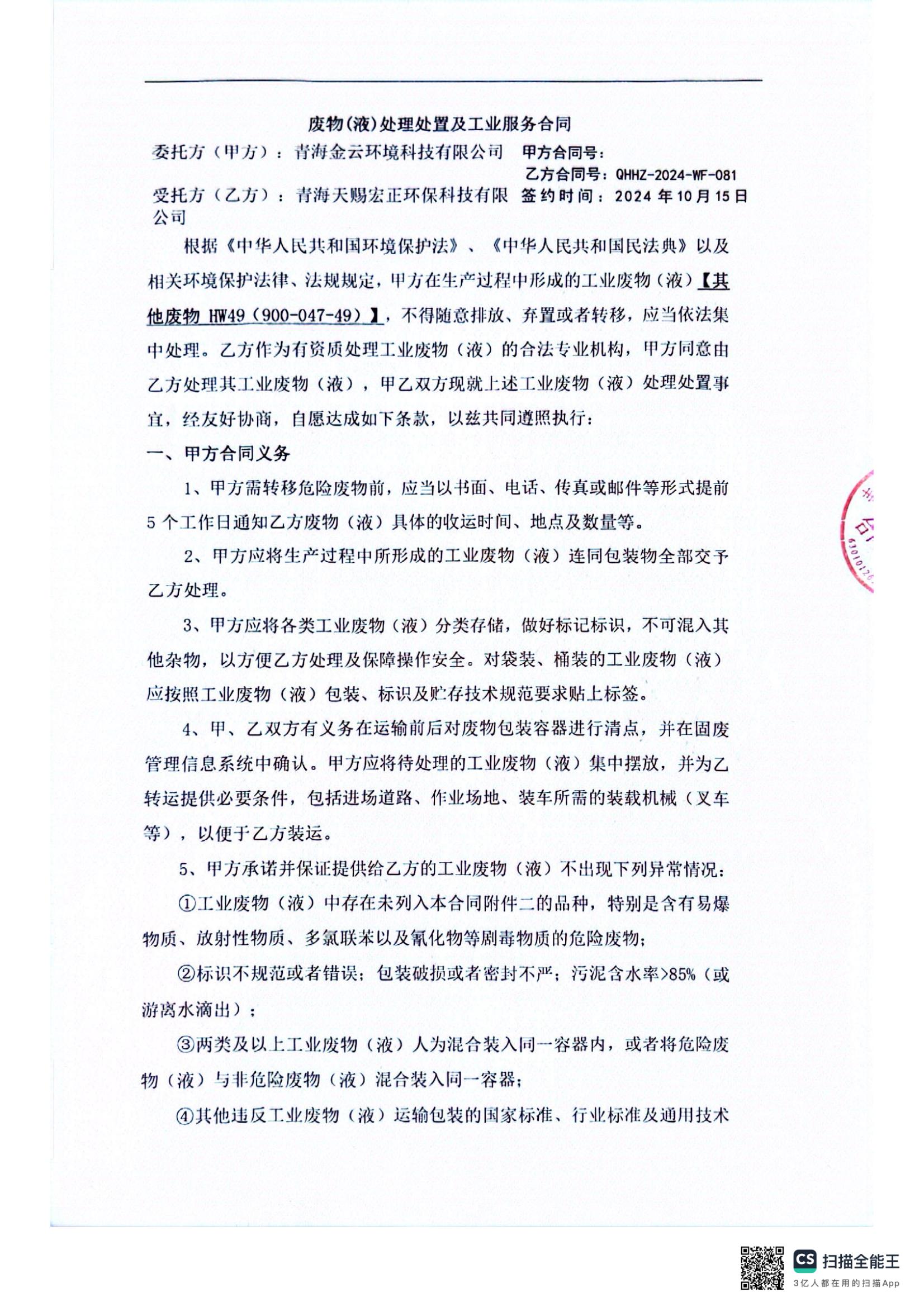 危廢處置合同發(fā)布日期:(2025/1/2) 點擊次數(shù):1463 |