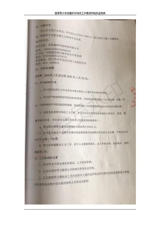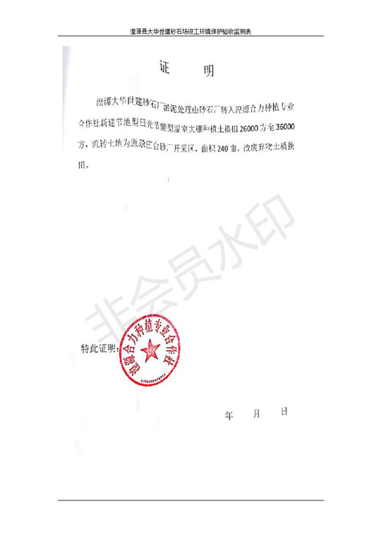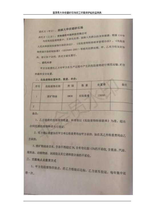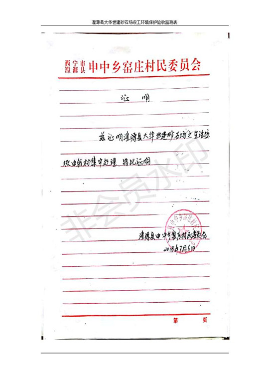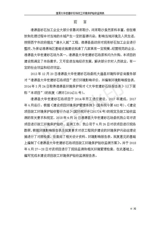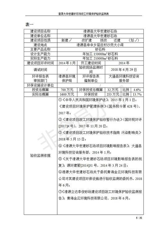 根據(jù)中華人民共和國(guó)國(guó)務(wù)院令第253號(hào)《建設(shè)項(xiàng)目環(huán)境保護(hù)管理?xiàng)l例》(中華人民共和國(guó)國(guó)務(wù)院令第682號(hào)《國(guó)務(wù)院關(guān)于修改〈建設(shè)項(xiàng)目環(huán)境保護(hù)管理?xiàng)l例〉的決定》和《建設(shè)項(xiàng)目竣工環(huán)境保護(hù)驗(yàn)收暫行辦法》,嚴(yán)格依照有關(guān)法律法規(guī),建設(shè)項(xiàng)目環(huán)境保護(hù)設(shè)施驗(yàn)收技術(shù)規(guī)范,本項(xiàng)目環(huán)評(píng)報(bào)告表和環(huán)保審批部門(mén)審批意見(jiàn)以及企業(yè)自行驗(yàn)收相關(guān)要求等對(duì)本項(xiàng)目進(jìn)行驗(yàn)收,本項(xiàng)目符合環(huán)保驗(yàn)收條件,可以通過(guò)環(huán)保驗(yàn)收。 湟源大華世建砂石場(chǎng)建設(shè)項(xiàng)目竣工環(huán)境保護(hù)驗(yàn)收意見(jiàn).