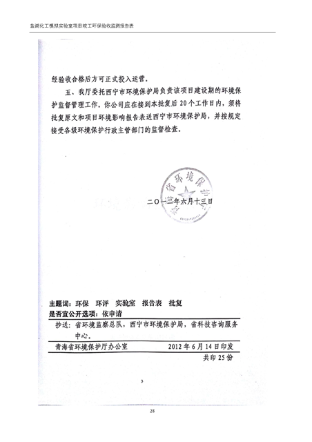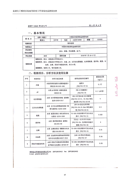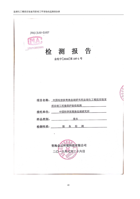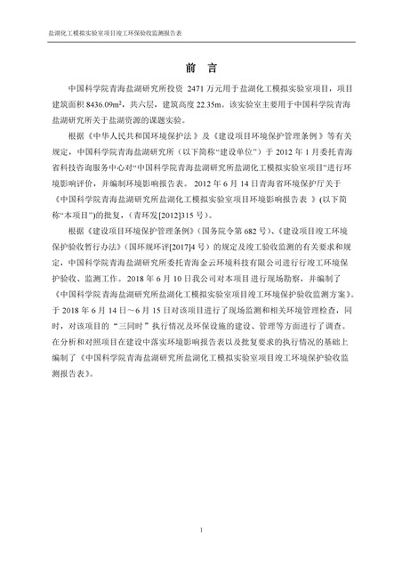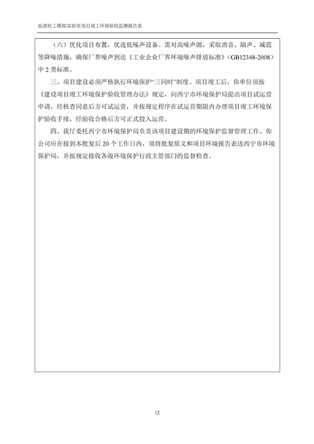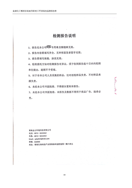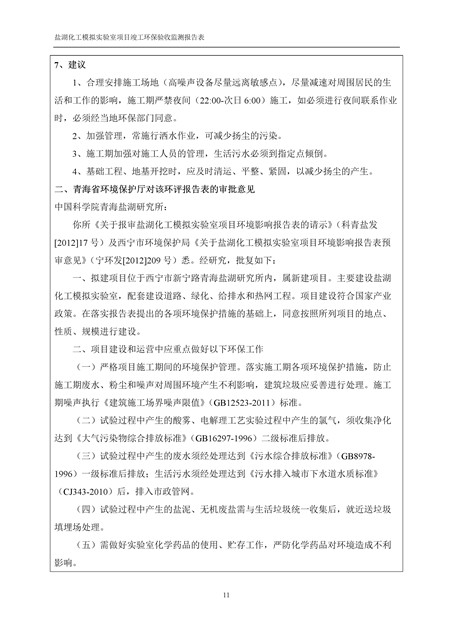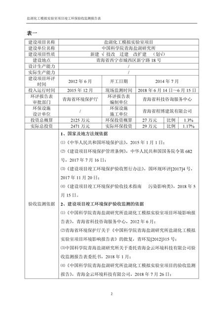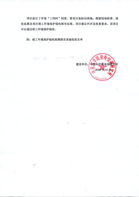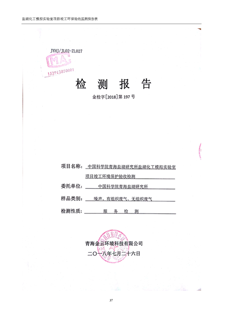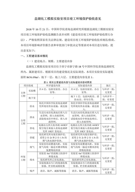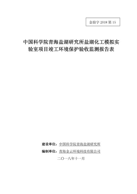 中國科學(xué)院青海鹽湖研究所鹽湖化工模擬實驗室項目竣工環(huán)境保護驗收監(jiān)測報告表公示發(fā)布日期:(2018-11-23) 點擊次數(shù):2223 |