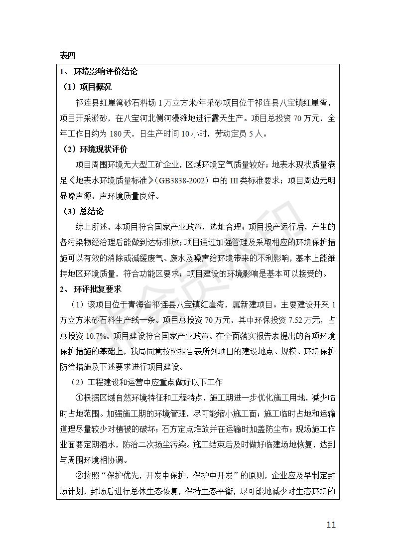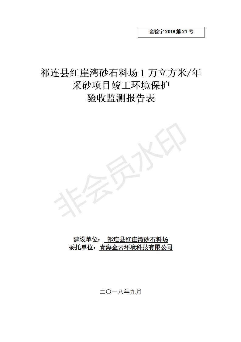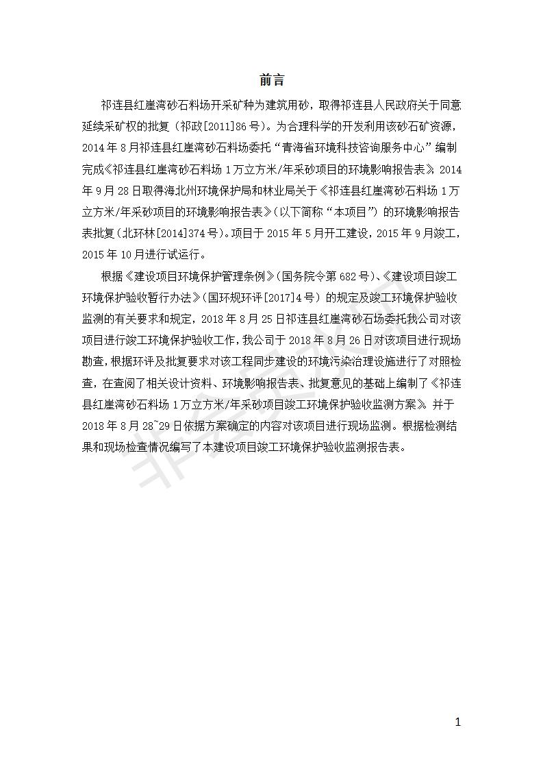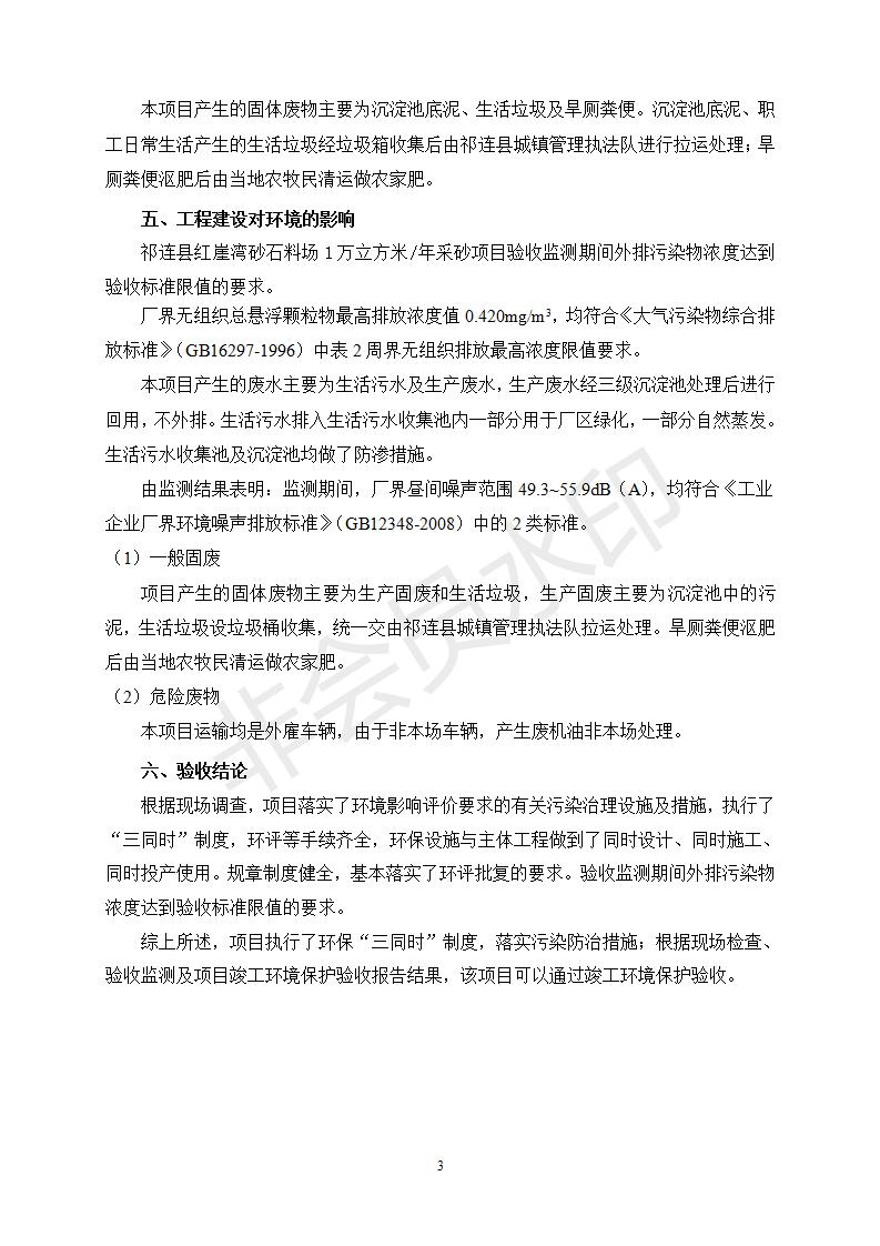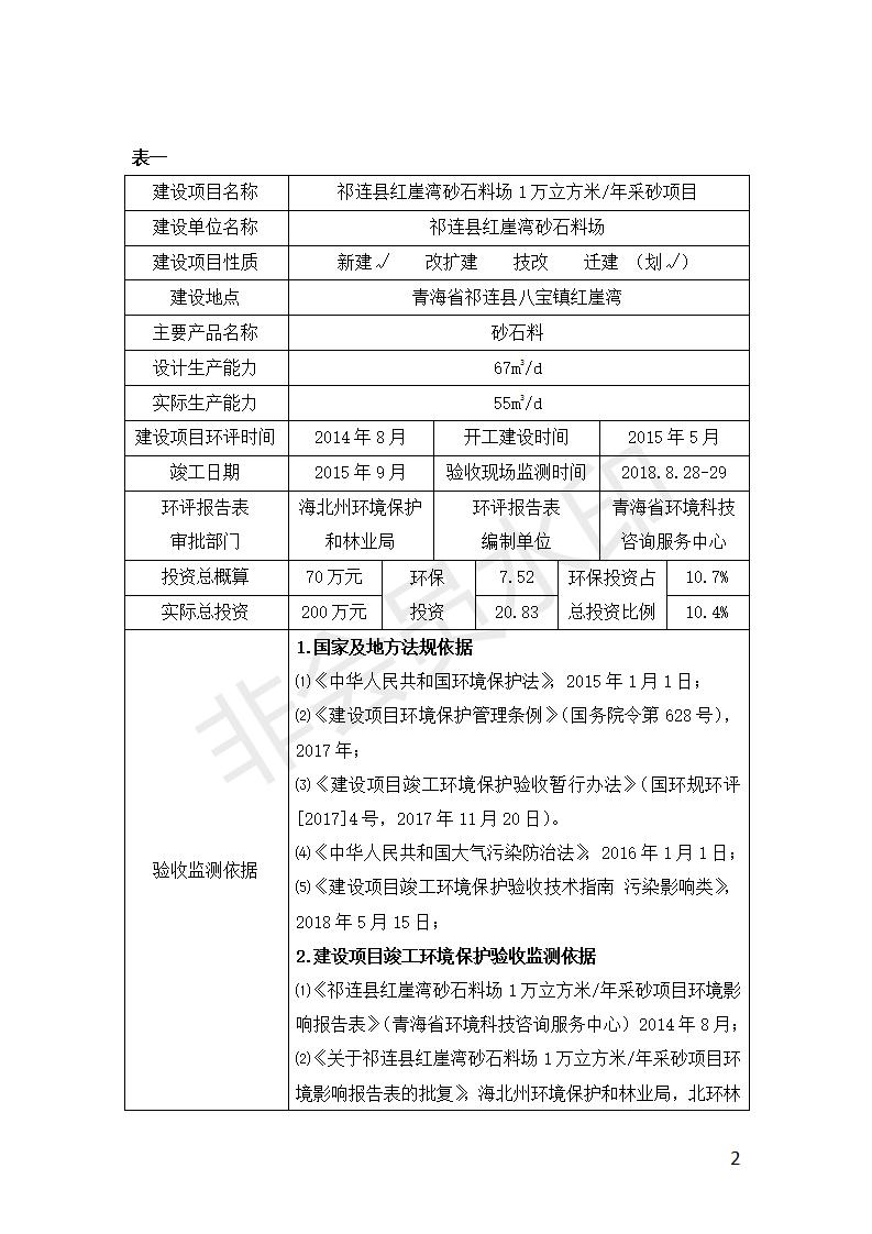祁連縣紅崖灣砂石料場1萬立方米/年采砂項(xiàng)目竣工環(huán)境保護(hù)驗(yàn)收監(jiān)測報(bào)告表公示