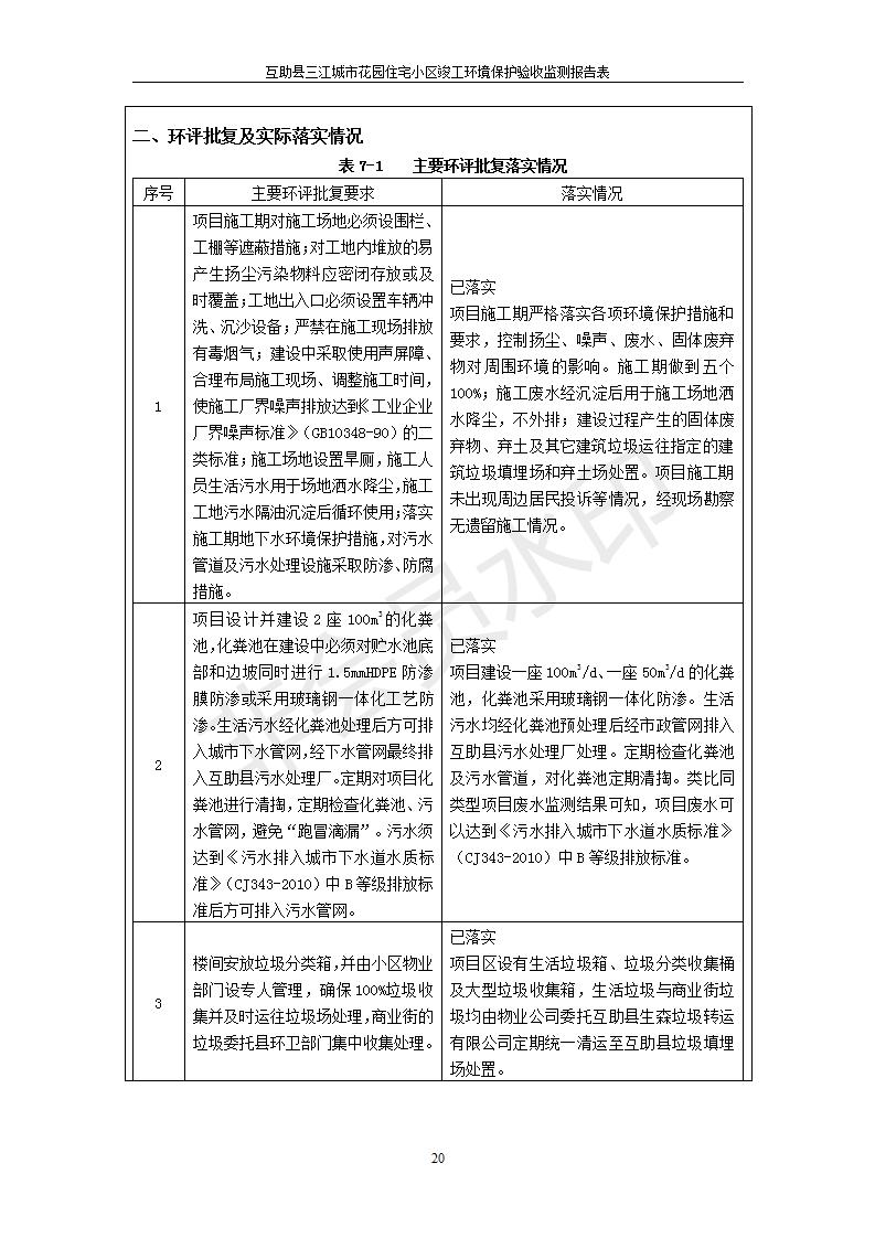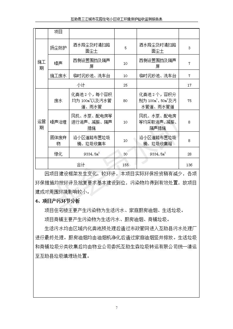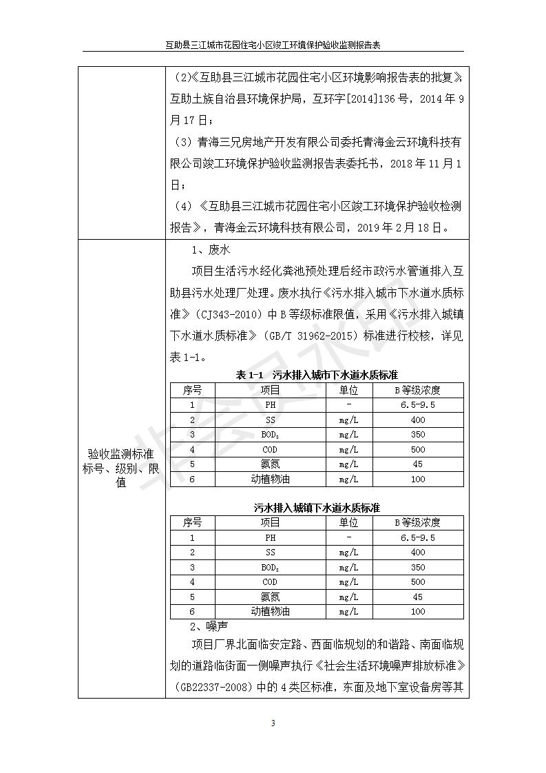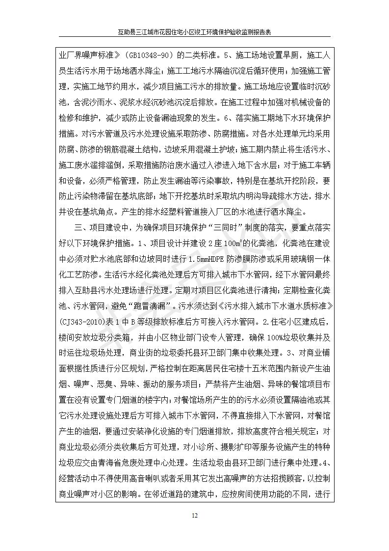 根據(jù)中華人民共和國國務(wù)院令第682號《國務(wù)院關(guān)于修改〈建設(shè)項目環(huán)境保護管理條例〉的決定》和《建設(shè)項目竣工環(huán)境保護驗收暫行辦法》(國務(wù)院令682號),互助縣三江城市花園住宅小區(qū)(包括竣工環(huán)境保護驗收監(jiān)測報告表和驗收意見)公示如下。 一、項目名稱: 互助縣三江城市花園住宅小區(qū)竣工環(huán)境保護驗收監(jiān)測報告表 二、地點:青海省海東市互助土族自治縣威遠鎮(zhèn)安定路與和諧路交匯處東南角 三、建設(shè)單位:青海三兄房地產(chǎn)開發(fā)有限公司 四、建設(shè)內(nèi)容:項目規(guī)劃用地面積26670.0m2,實際占地面積26670.0m2,項目占地面積未發(fā)生變化,規(guī)劃設(shè)計建筑總面積76616.4m2,其中商業(yè)建筑面積8994m2。實際建筑總面積58639.64m2,其中商業(yè)建筑面積9894.27m2。 五、聯(lián)系人:張工 六、聯(lián)系電 話:0971-6515411 七、公示時間:二〇一九年六月五日至二〇一九年七月三日 公示期間,對上述公示內(nèi)容如有異議,請以書面形式反饋,個人須署真實姓名,單位須加蓋公章。