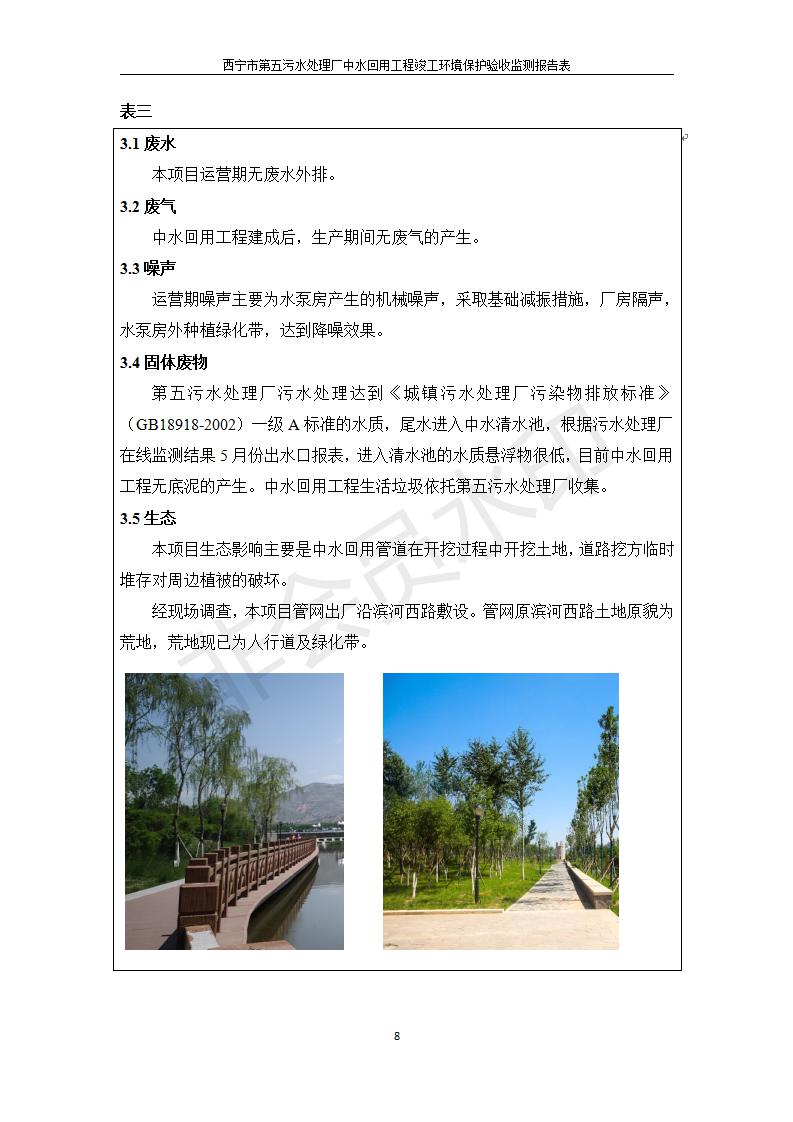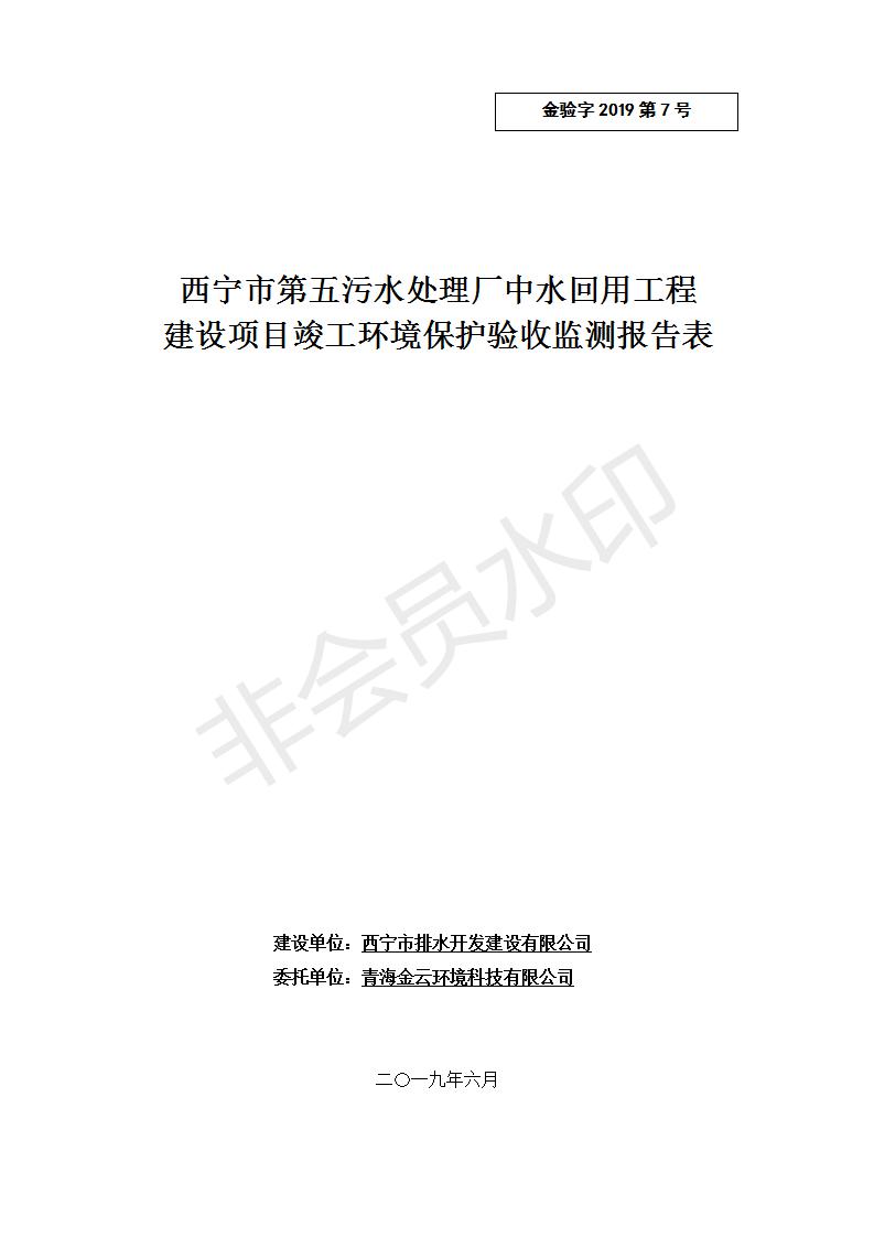 根據中華人民共和國國務院令第682號《國務院關于修改〈建設項目環(huán)境保護管理條例〉的決定》和《建設項目竣工環(huán)境保護驗收暫行辦法》(國務院令682號),西寧市第五污水處理廠中水回用工程建設項目(包括竣工環(huán)境保護驗收監(jiān)測報告表和驗收意見)公示如下。 一、項目名稱:西寧市第五污水處理廠中水回用工程建設項目 二、地點:西寧市城北區(qū)廿十里鋪雙蘇堡 三、建設單位:西寧市排水開發(fā)建設有限公司