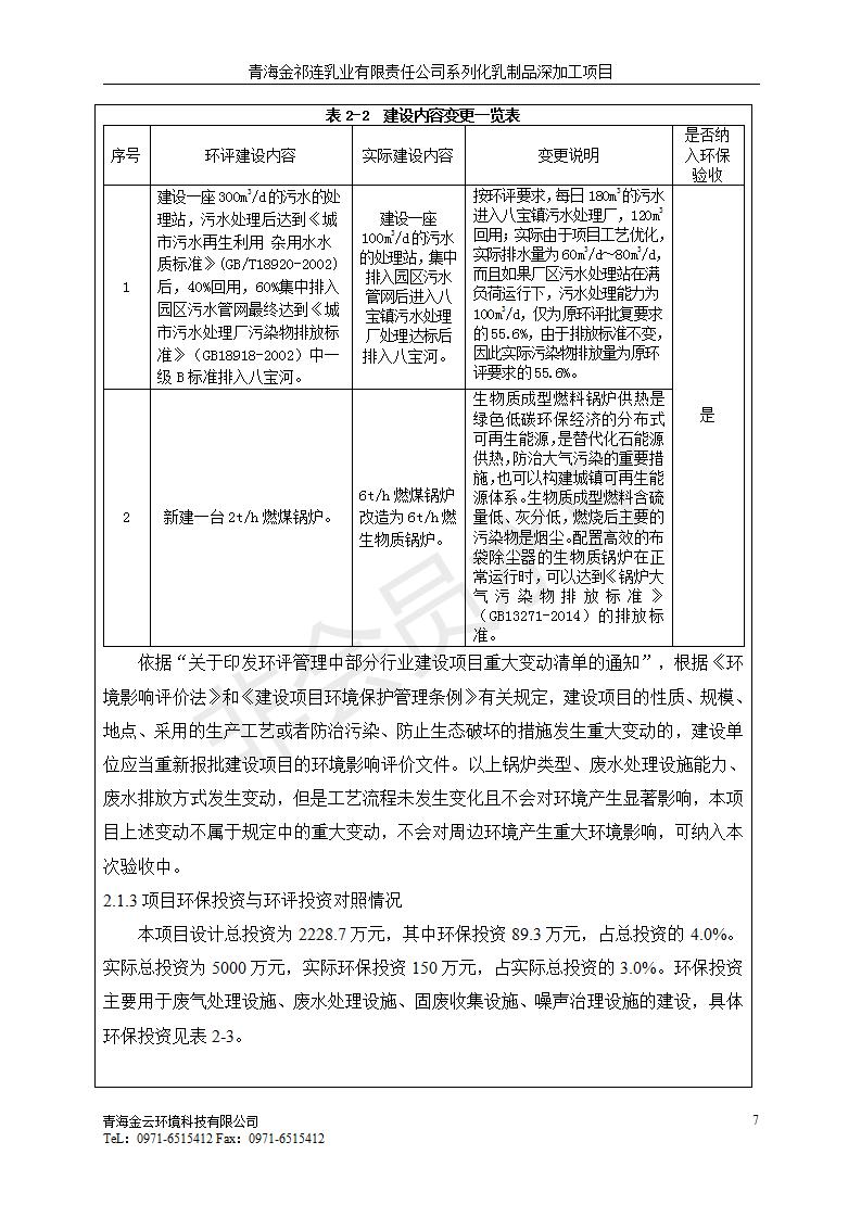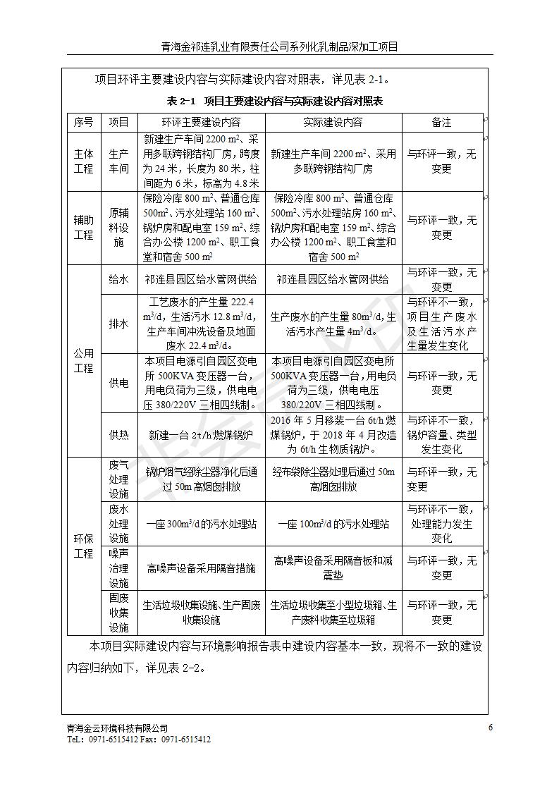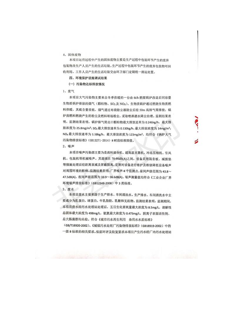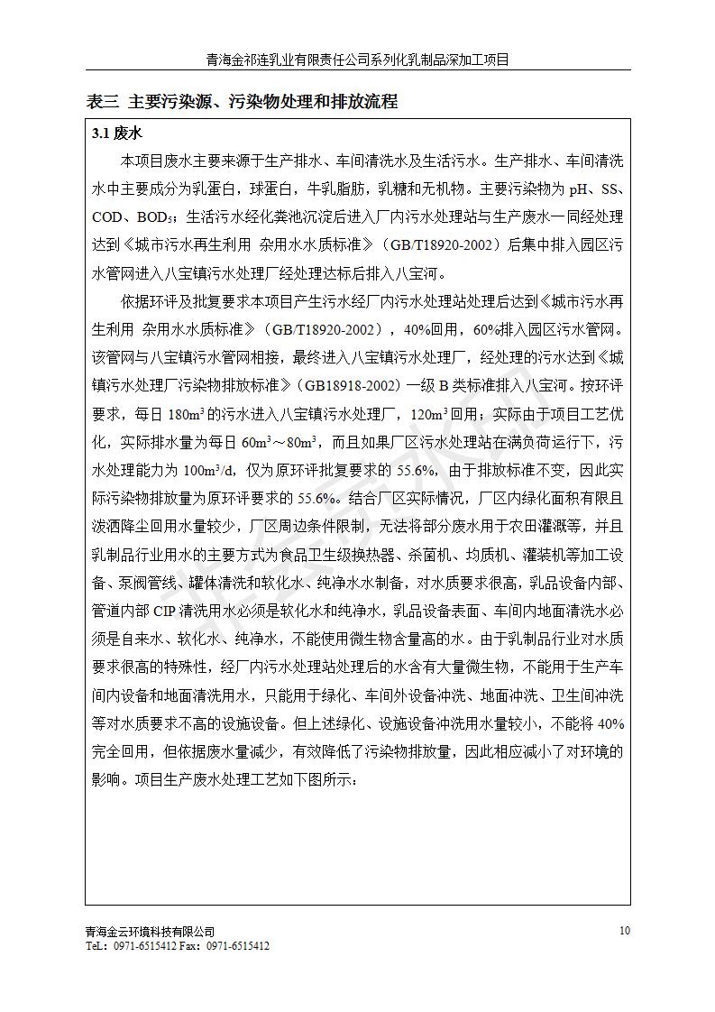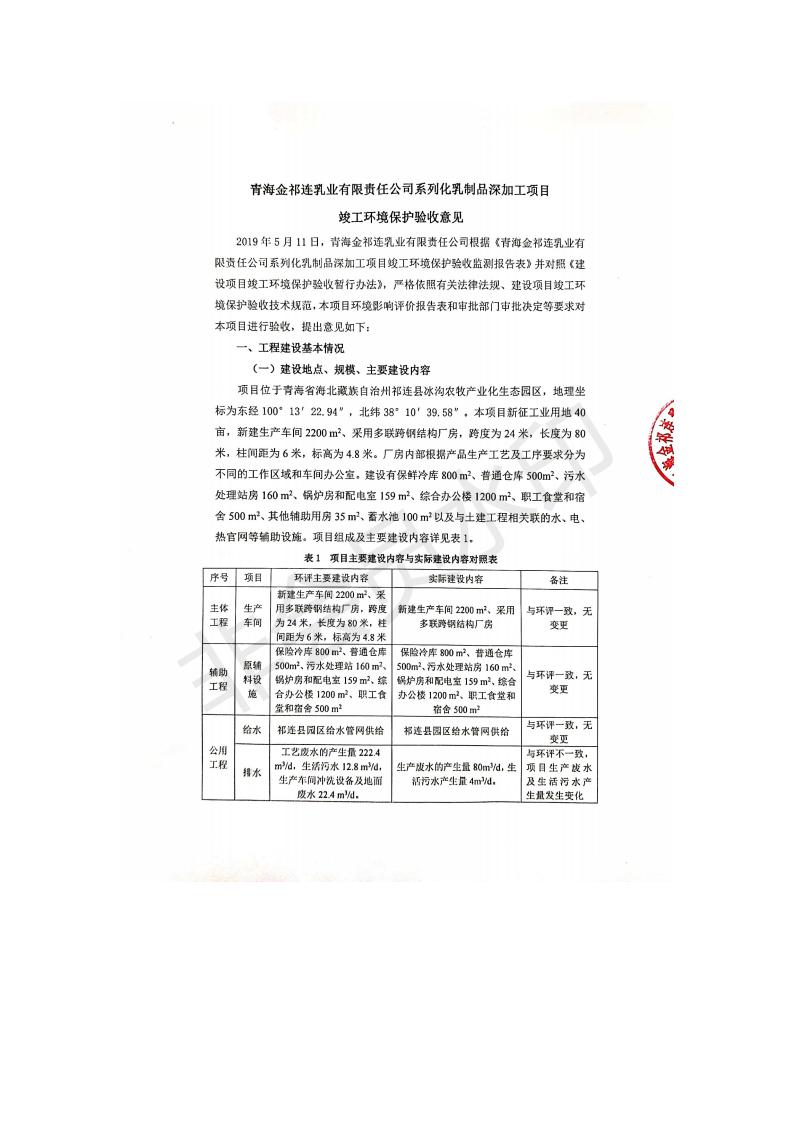 根據(jù)中華人民共和國國務院令第682號《國務院關于修改〈建設項目環(huán)境保護管理條例〉的決定》和《建設項目竣工環(huán)境保護驗收暫行辦法》(國務院令682號),青海金祁連乳業(yè)有限責任公司系列化乳制品深加工項目(包括竣工環(huán)境保護驗收監(jiān)測報告表和驗收意見)公示如下。 一、項目名稱:青海金祁連乳業(yè)有限責任公司系列化乳制品深加工項目 二、地點:海北藏族自治州祁連縣冰溝農牧產業(yè)化生態(tài)園區(qū) 三、建設單位:青海金祁連乳業(yè)有限責任公司 四、建設內容:本項目新征工業(yè)用地40畝,新建生產車間2200 m2、采用多聯(lián)跨鋼結構廠房,跨度為24米,長度為80米,柱間距為6米,標高為4.8米。廠房內部根據(jù)產品生產工藝及工序要求分為不同的工作區(qū)域和車間辦公室。建設有保鮮冷庫800 m2、普通倉庫500m2、污水處理站房160 m2、鍋爐房和配電室159 m2、綜合辦公樓1200 m2、職工食堂和宿舍500 m2、其他輔助用房35 m2、蓄水池100 m2以及與土建工程相關聯(lián)的水、電、熱官網等輔助設施。 五、聯(lián)系人:張工 六、聯(lián)系電 話:0971-6515411 七、公示時間:二〇一九年七月十日至二〇一九年八月六日 公示期間,對上述公示內容如有異議,請以書面形式反饋,個人須署真實姓名,單位須加蓋公章。