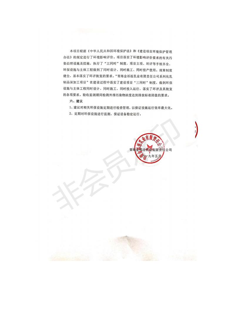 青海金祁連乳業(yè)有限責任公司系列化乳制品深加工項目竣工環(huán)境保護驗收監(jiān)測報告表公示發(fā)布日期:(2019-7-10) 點擊次數(shù):2263 |