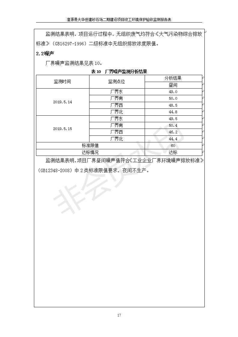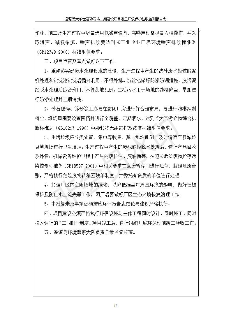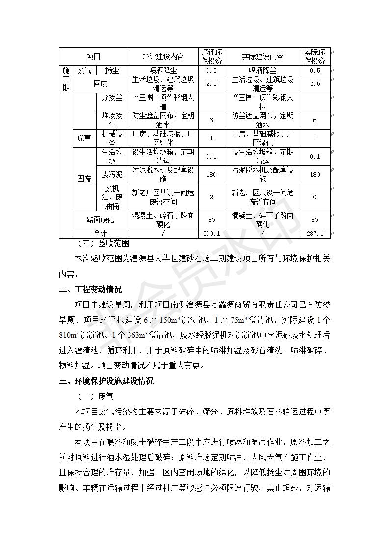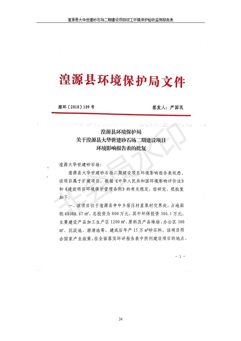 根據(jù)中華人民共和國國務(wù)院令第682號《國務(wù)院關(guān)于修改〈建設(shè)項(xiàng)目環(huán)境保護(hù)管理?xiàng)l例〉的決定》和《建設(shè)項(xiàng)目竣工環(huán)境保護(hù)驗(yàn)收暫行辦法》(國務(wù)院令682號),湟源大華世建砂石場湟源縣大華世建砂石場二期建設(shè)項(xiàng)目(包括竣工環(huán)境保護(hù)驗(yàn)收監(jiān)測報(bào)告表和驗(yàn)收意見)公示如下。 一、項(xiàng)目名稱:湟源縣大華世建砂石場二期建設(shè)項(xiàng)目 二、地點(diǎn):湟源縣申中鄉(xiāng)窯莊村沙崗大小灣 三、建設(shè)單位:湟源大華世建砂石場 四、建設(shè)內(nèi)容:項(xiàng)目主要建設(shè)砂石料產(chǎn)品加工生產(chǎn)區(qū)、原料堆場、產(chǎn)品堆場、辦公區(qū)等。五、聯(lián)系人:張工 六、聯(lián)系電 話:0971-6515411 七、公示時(shí)間:二〇一九年七月二十五日至二〇一九年八月二十一日公示期間,對上述公示內(nèi)容如有異議,請以書面形式反饋,個(gè)人須署真實(shí)姓名,單位須加蓋公章。