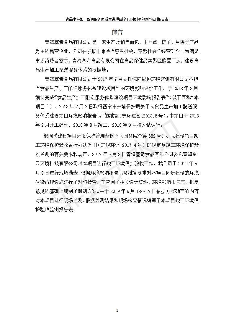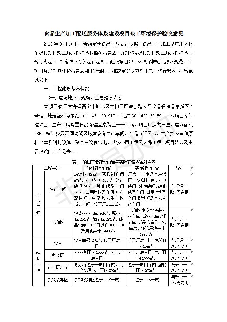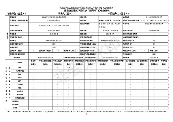 根據(jù)中華人民共和國國務(wù)院令第682號《國務(wù)院關(guān)于修改〈建設(shè)項(xiàng)目環(huán)境保護(hù)管理?xiàng)l例〉的決定》和《建設(shè)項(xiàng)目竣工環(huán)境保護(hù)驗(yàn)收暫行辦法》(國務(wù)院令682號),食品生產(chǎn)加工配送服務(wù)體系建設(shè)項(xiàng)目(包括竣工環(huán)境保護(hù)驗(yàn)收監(jiān)測報(bào)告表和驗(yàn)收意見)公示如下。 一、項(xiàng)目名稱:食品生產(chǎn)加工配送服務(wù)體系建設(shè)項(xiàng)目 二、地點(diǎn):西寧市城北區(qū)生物園區(qū)迎新路5號食品保健品集聚區(qū)1號樓 六、聯(lián)系電 話:0971-6515411 七、公示時(shí)間:二〇一九年九月二十日至二〇一九年十月二十二日 公示期間,對上述公示內(nèi)容如有異議,請以書面形式反饋,個(gè)人須署真實(shí)姓名,單位須加蓋公章。