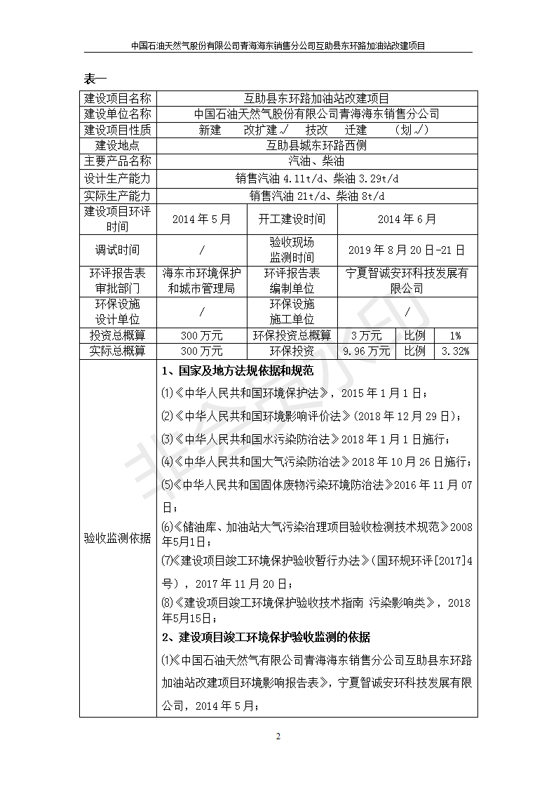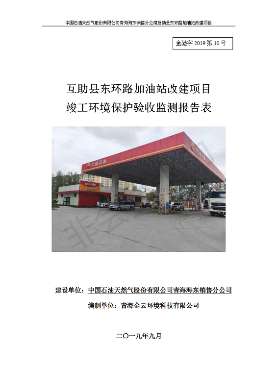 互助縣東環(huán)路加油站改建項目竣工環(huán)境保護驗收監(jiān)測報告表公示發(fā)布日期:(2019-9-27) 點擊次數(shù):2423 |