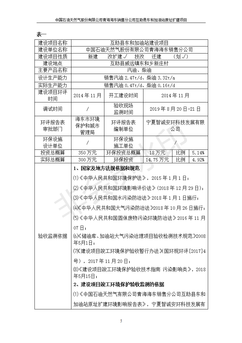 互助縣東和加油站原址擴(kuò)建項目 竣工環(huán)境保護(hù)驗收監(jiān)測報告表公示發(fā)布日期:(2019-9-27) 點擊次數(shù):2468 |
