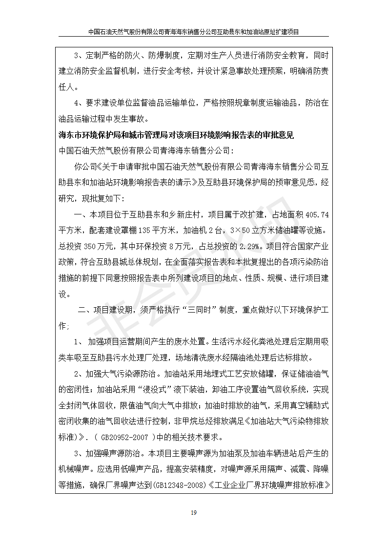 | 上一篇:糧油、食品、飼料等加工綜合園區(qū)項目竣工環(huán)境保護(hù)驗收監(jiān)測報告表公示 | 下一篇:互助縣東環(huán)路加油站改建項目竣工環(huán)境保護(hù)驗收監(jiān)測報告表公示 |