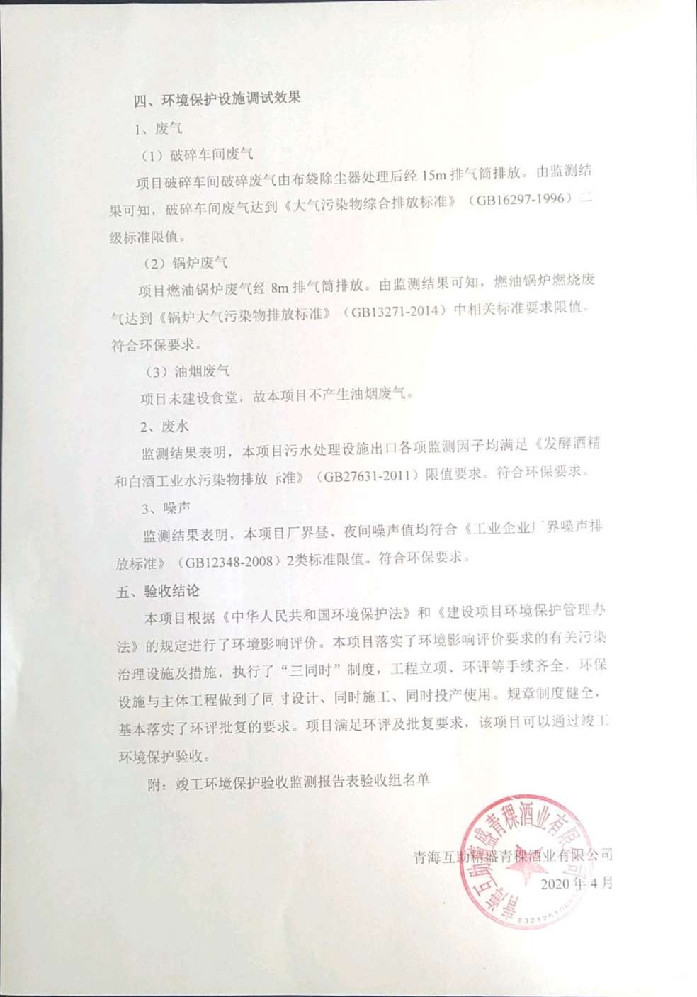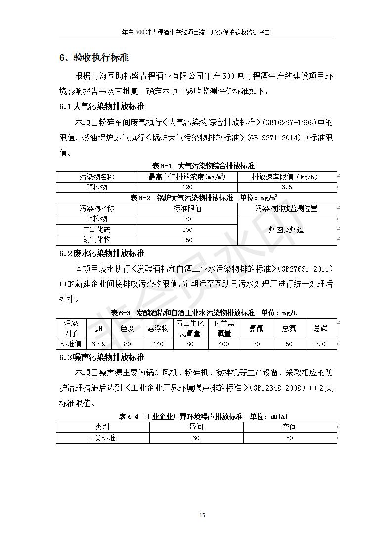 根據(jù)中華人民共和國(guó)國(guó)務(wù)院令第682號(hào)《國(guó)務(wù)院關(guān)于修改〈建設(shè)項(xiàng)目環(huán)境保護(hù)管理?xiàng)l例〉的決定》和《建設(shè)項(xiàng)目竣工環(huán)境保護(hù)驗(yàn)收暫行辦法》(國(guó)務(wù)院令682號(hào)),綜合檢測(cè)實(shí)驗(yàn)室建設(shè)項(xiàng)目(包括竣工環(huán)境保護(hù)驗(yàn)收監(jiān)測(cè)報(bào)告表和驗(yàn)收意見(jiàn))公示如下。 一、項(xiàng)目名稱:青;ブ⑶囡茦I(yè)有限公司年產(chǎn)500噸青稞酒業(yè)生產(chǎn)線建設(shè)項(xiàng)目 二、地點(diǎn):青海省海東市互助土族自治縣臺(tái)子鄉(xiāng)河?xùn)|村198號(hào)